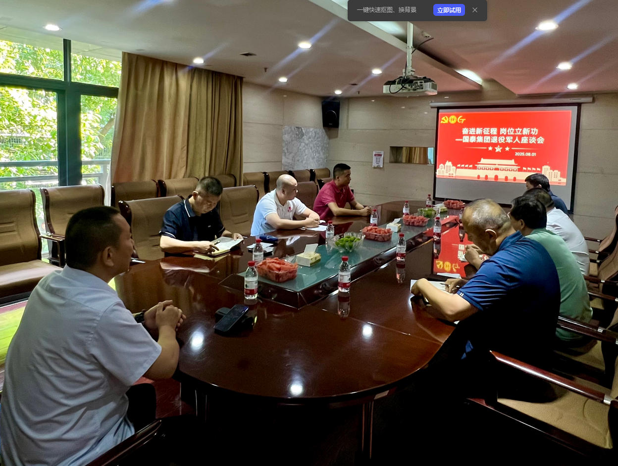 为纪念中国人民解放军建军98周年,继承和发扬军队纪律严明、甘于奉献的优良传统,传承红色基因,弘扬拥军优属风尚,凝聚军政军民团结力量,集团于2025年8月1日在三楼会议室召开以“奋进新征程岗位立新功”为主题的退役军人座谈会,公司全体退役军人参会。